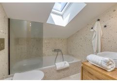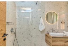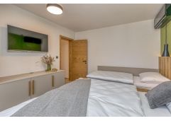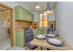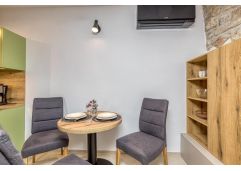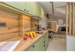 A renovated stone house with tri apartments is for sale. The apartment on the ground floor and on the first floor consists of a separate bedroom with a double bed and a bed for one person, a kitchen with a dining room and a bathroom. On the second and third floor there is an apartment with one bedroom, living room, dining room and bathroom. The laundry room for the entire house is located in the basement and is available to guests. Air conditioners are in all apartments.